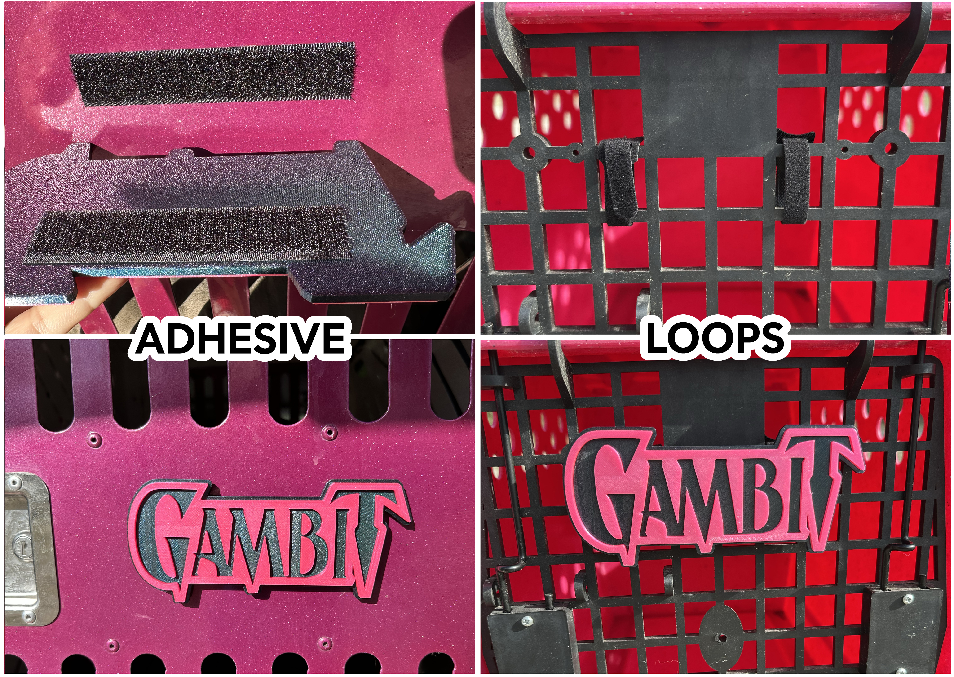 Comes with a strip of adhesive velcro on the back and velcro loops to attach to a crate, or more adhesive velcro for your chosen flat surface